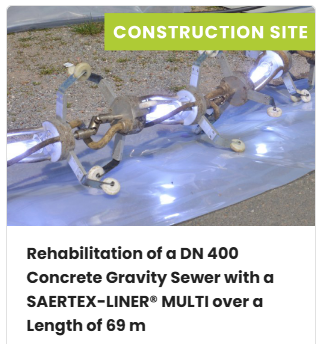 Rehabilitation of a DN 400 concrete sewer section with “Lining with Cured-In-Place Pipes” (product name: SAERTEX-LINER® MULTI, type S+ Standard). The aim of the rehabilitation measure was the static strengthening and the restoration of the tightness of the old sewer.